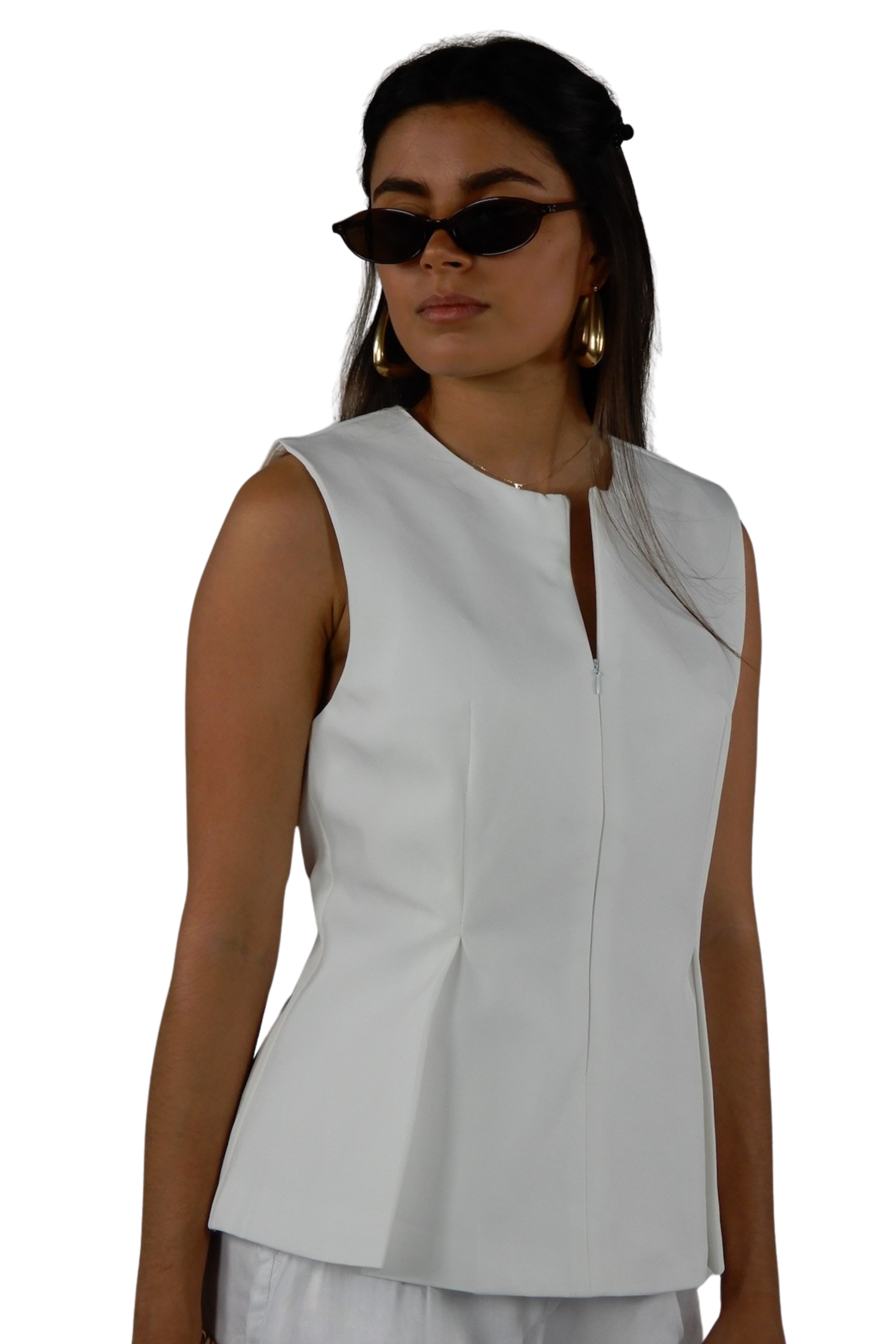 Productinformatie: Deze top is voorzien van een ritssluiting aan de voorzijde. Door de wijd uitlopende splitjes aan de onderkant worden de taille mooi geaccentueerd.